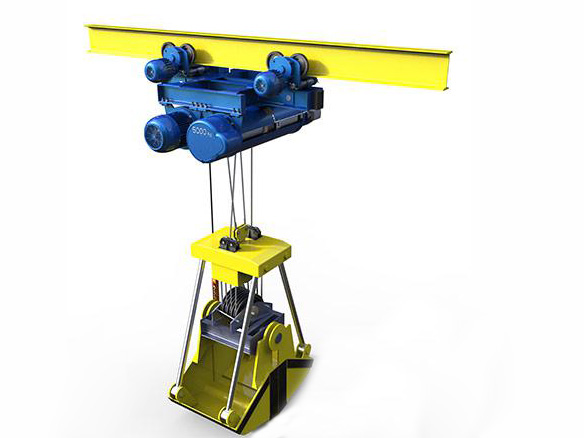 CD/MD型抓斗電動葫蘆往往與懸掛小車、承載梁、四繩抓斗等相連接組成一種架空運輸裝置(即抓斗起重機),可以不占場地,僅靠架空軌道運行的懸掛式架空小車來實現(xiàn)工段與工段之間、車間與車間之間、工廠與工廠之間的大量散粒物品的裝卸和運輸。